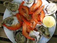 Through their kindness,we sampled various seafood, oysters, crevettes (prawns),bullots (whelks), sardines, grilled anguille (eel); and also tried an aperitif - 'Pineau des Charentes' with the local sausage.